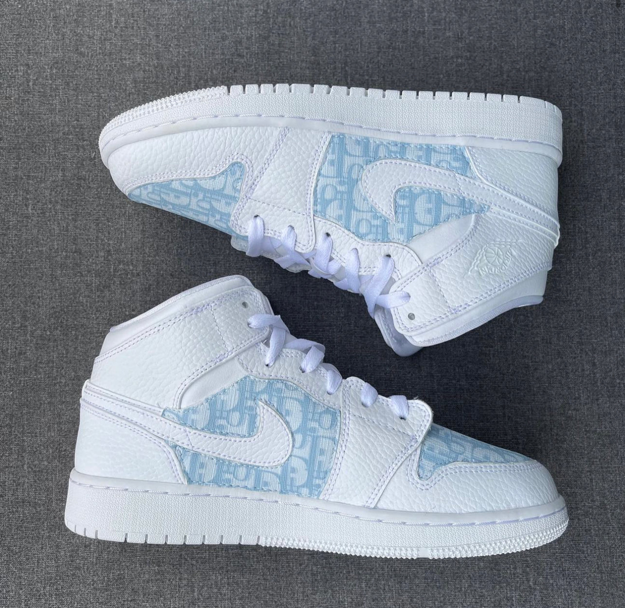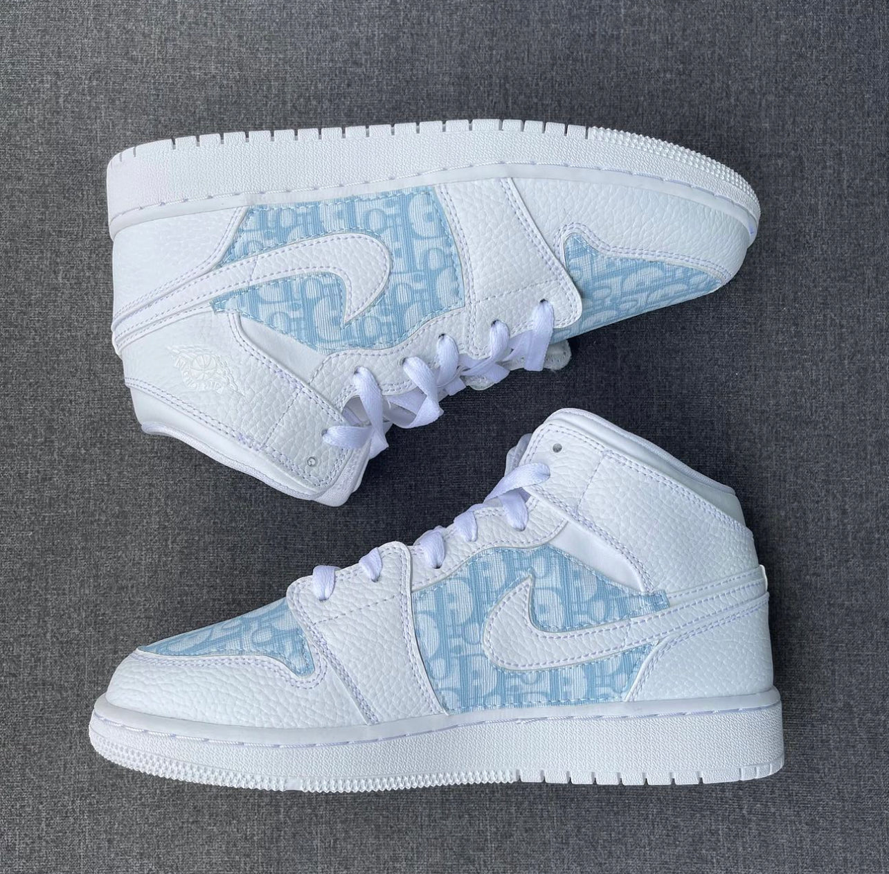 White AJ1Mid Adult x CD baby blue